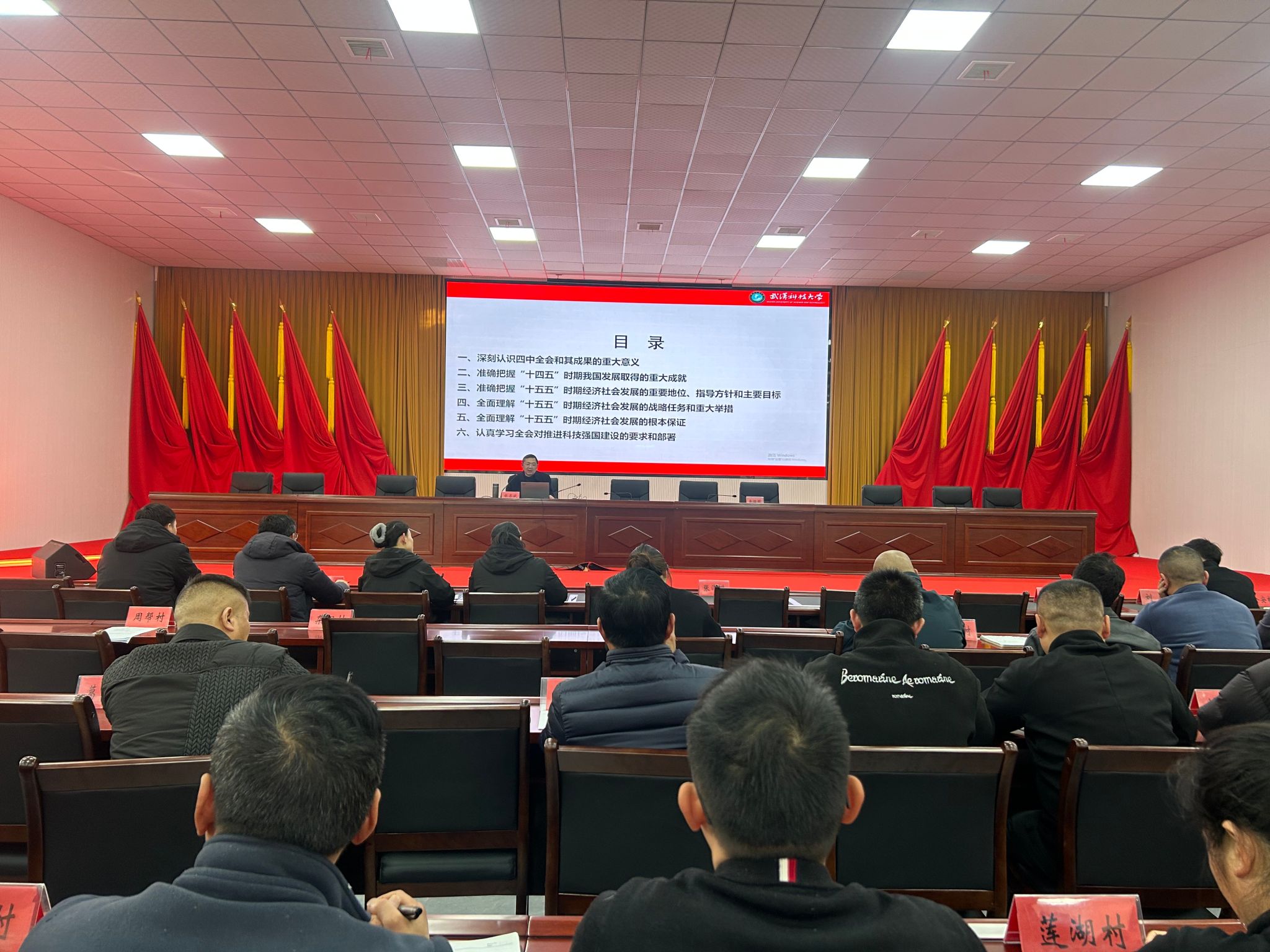 在排湖旅游度假区管委会,beat365官网中文版本经理刘文波教授以《深学笃行四中全会精神 接续推进中国式现代化》为题,展开了一场既深刻又生动的解读。他从“十四五”时期我国经济社会发展所取得的重大成就和在历史交汇点上把握战略抉择的时代价值切入,深入剖析“十五五”时期我国发展环境基本特征,解码中国式现代化的“十五五”行动纲领,最终落脚于“以实干担当把宏伟蓝图变为美好现实”。语言生动,案例鲜活,层层递进,启人思考。