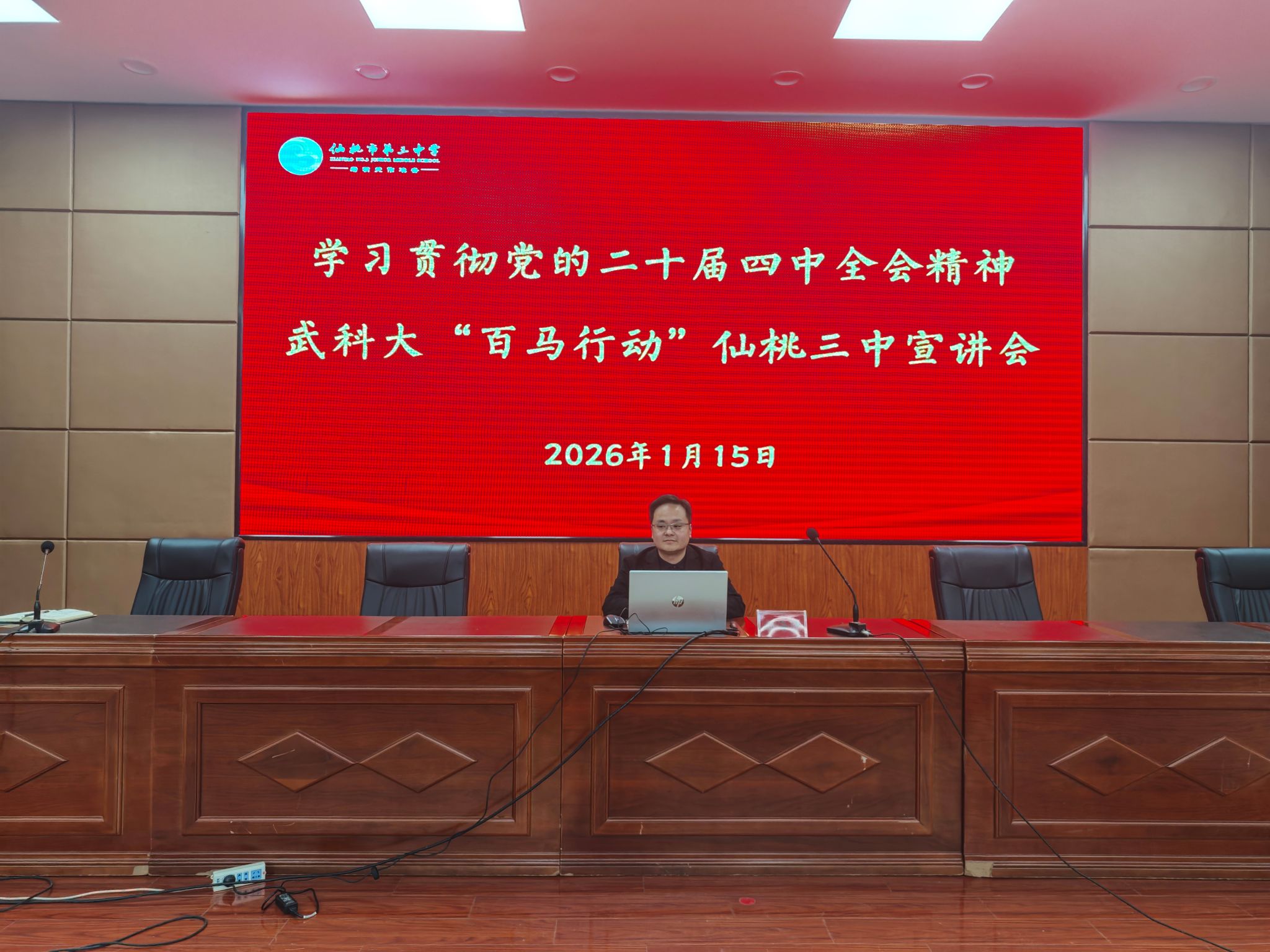 1月15日,beat365官网中文版本“百马行动”宣讲队来到仙桃,开展学习贯彻党的二十届四中全会精神“百马行动”宣讲活动。从市直机关到乡镇街道,从企业车间到社区村组,九场宣讲同步铺开。专题报告、座谈交流、微视频录制……多种形式交织,与基层党员干部群众“面对面”对话、“心贴心”交流,推动党的创新理论在基层生根发芽。