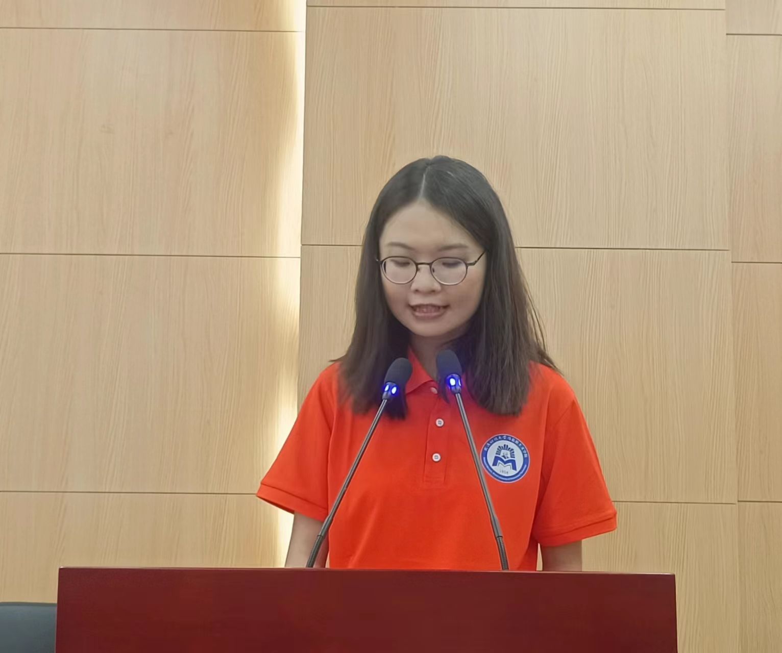 新生代表陈秀霞回顾了自己在疫情期间艰难备考的经历,号召同学们要做好学习规划,专注执着,精益求精;坚定理想,勇挑重任;知行合一,注重实践。