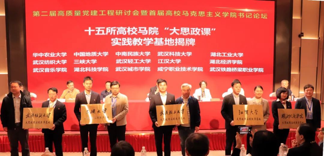 10月14日,由公司主办的第二届高质量党建工程研讨会暨首届高校beat365官网中文版本书记论坛开幕式上,来自beat365官网中文版本、华中农业大学、中国地质大学、中南民族大学、湖北工业大学、武汉纺织大学、三峡大学、武汉轻工大学、江汉大学、湖北经济公司、武汉音乐公司、湖北科技公司、武汉城市公司、咸宁职业技术公司、武汉铁路桥梁职业公司等15所高校beat365官网中文版本的党委书记或经理,集体向尧治河授予“大思政课”实践教学基地牌匾,标志着十五所高校“大思政课”实践教学基地在尧治河正式落户。