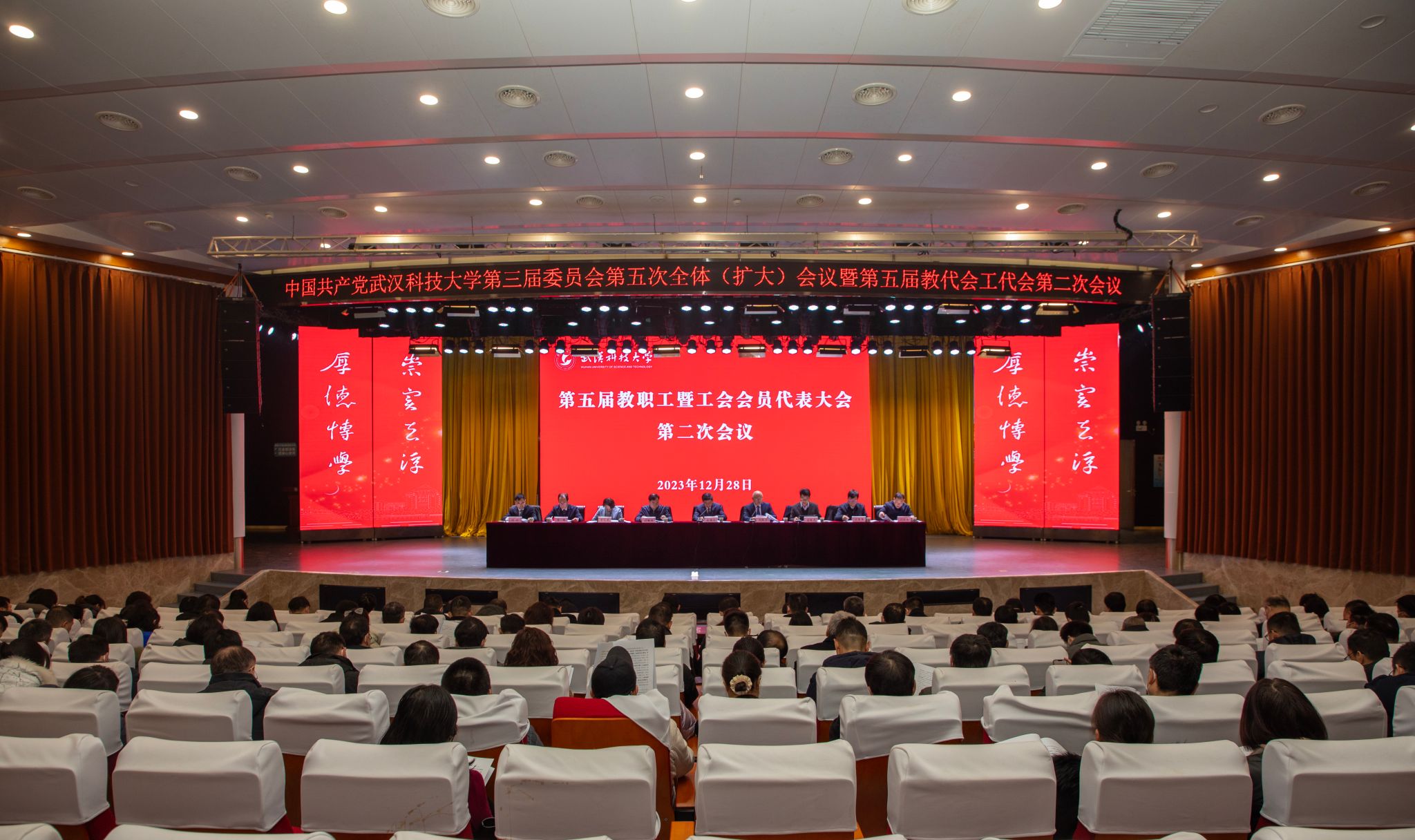 武科大网讯 12月28日上午,公司第五届教职工暨工会会员代会大会第二次会议在青山校区碧园会堂召开。全体校领导,近两百名教代会工代会代表、列席代表、特邀代表凝心聚力,共商公司高质量发展大计。