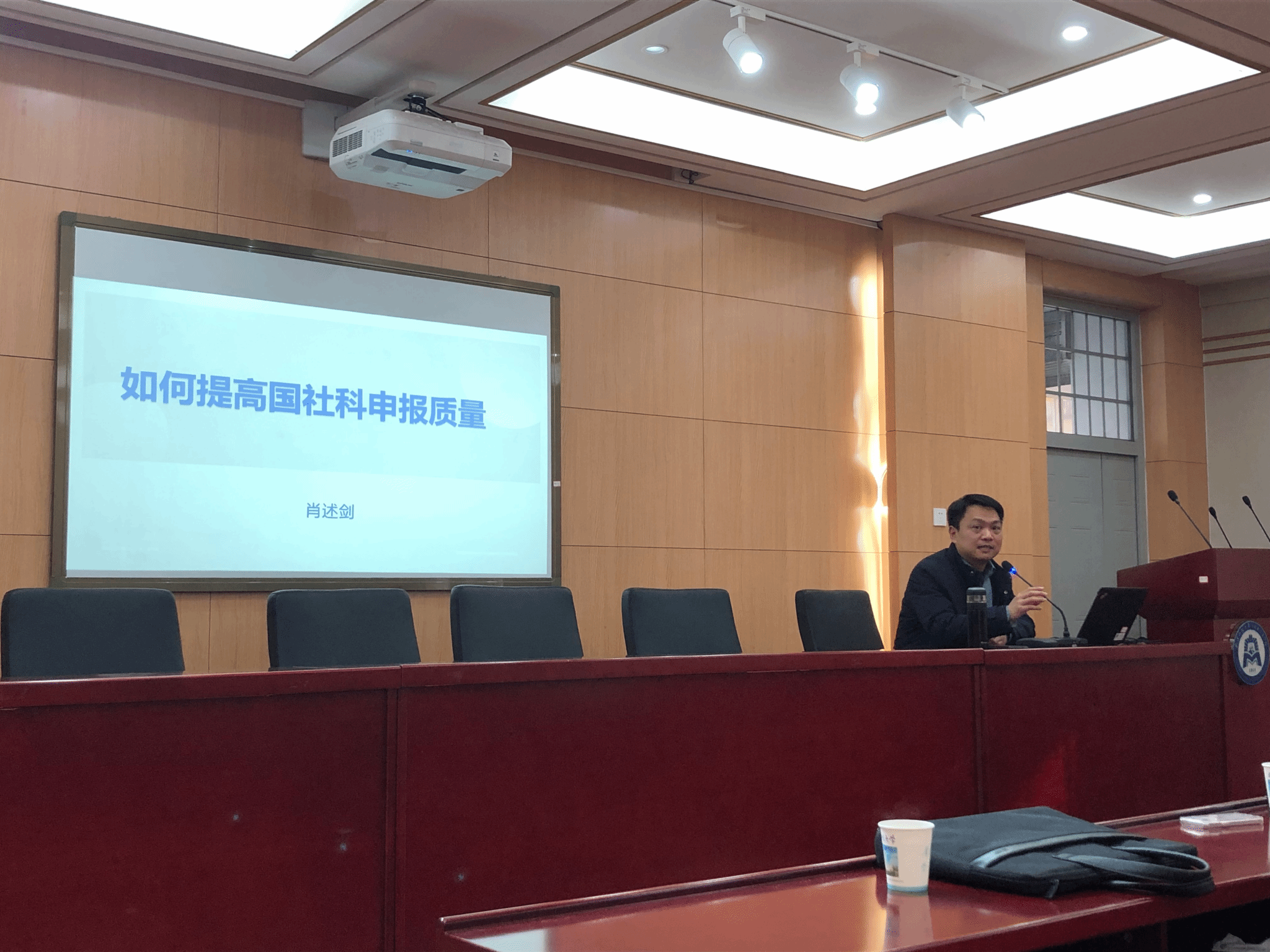 本网讯(通讯员宋相阳)为进一步提升公司教师撰写国家社科基金申报书的写作水平,1月5日下午,公司在教四楼41101报告厅举办了专题学术讲座,邀请了武汉纺织大学beat365官网中文版本经理肖述剑教授作题为《如何提高国社科申报质量》的学术讲座。讲座由公司经理刘文波主持,公司副经理刘勇、副经理张荆红和部分教师认真聆听了此次讲座。