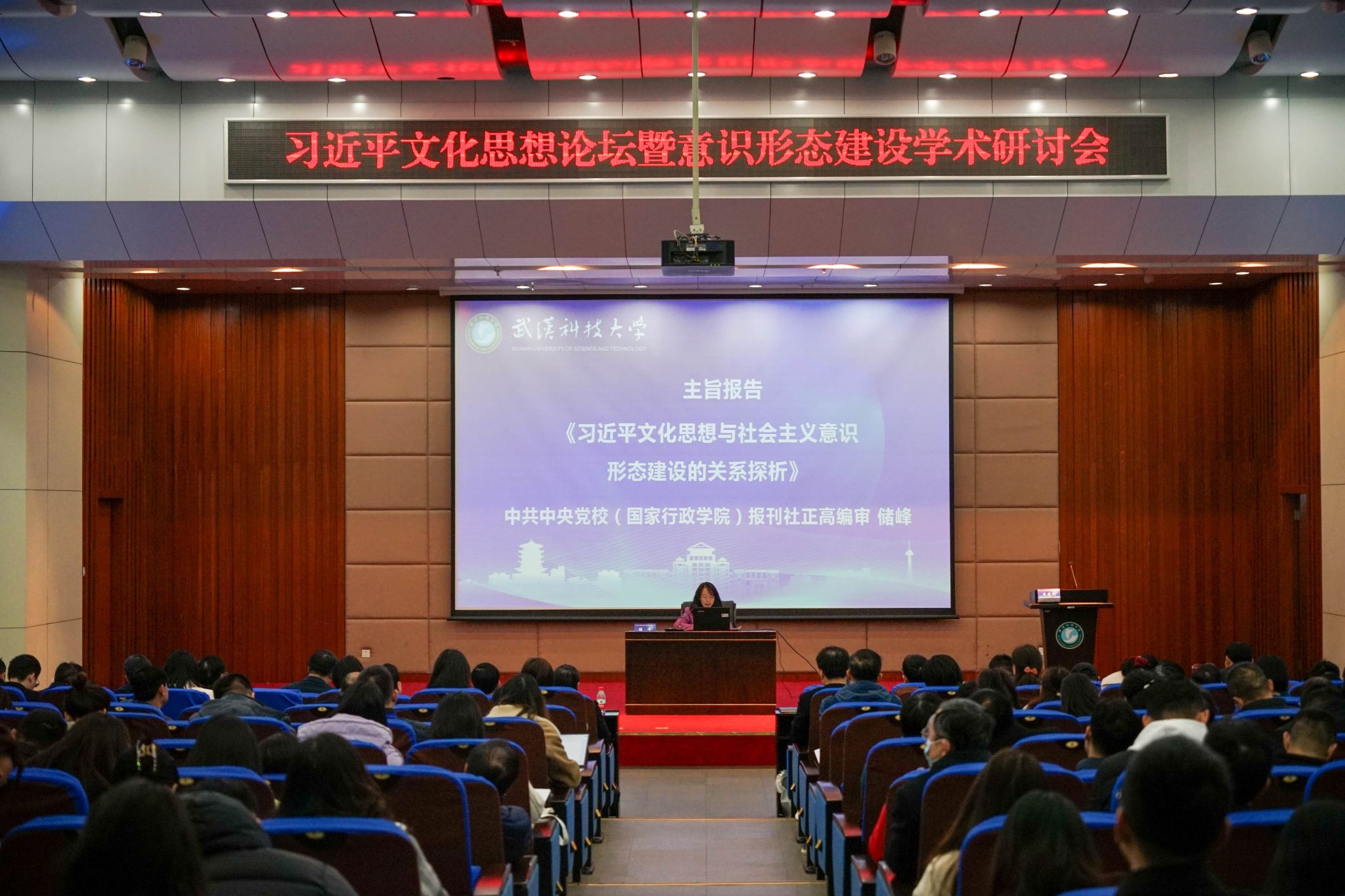 武科大网讯(通讯员郭海沙 李文晶)3月9日,由湖北省社会科学界联合会学术部与湖北意识形态建设研究院共同主办,beat365官网中文版本承办的习近平文化思想论坛暨意识形态建设学术研讨会顺利召开。湖北省人大教科文卫委员会副主任喻立平,湖北省社科公司党组副书记、经理黄学龙,湖北省社科联党组成员、副主席刘卫桥,湖北省委宣传部舆情信息处处长谢云,beat365官网中文版本党委副书记孙国胜等领导出席了会议。中共中央党校(国家行政公司)报刊社、《公司党建与思想教育》、《中国社会科学报》、人民网、荆楚网等杂志社和媒体,以及来自全国97所高校的教授、学者、老师和员工262人参会。公司beat365官网中文版本经理刘文波主持开幕式。