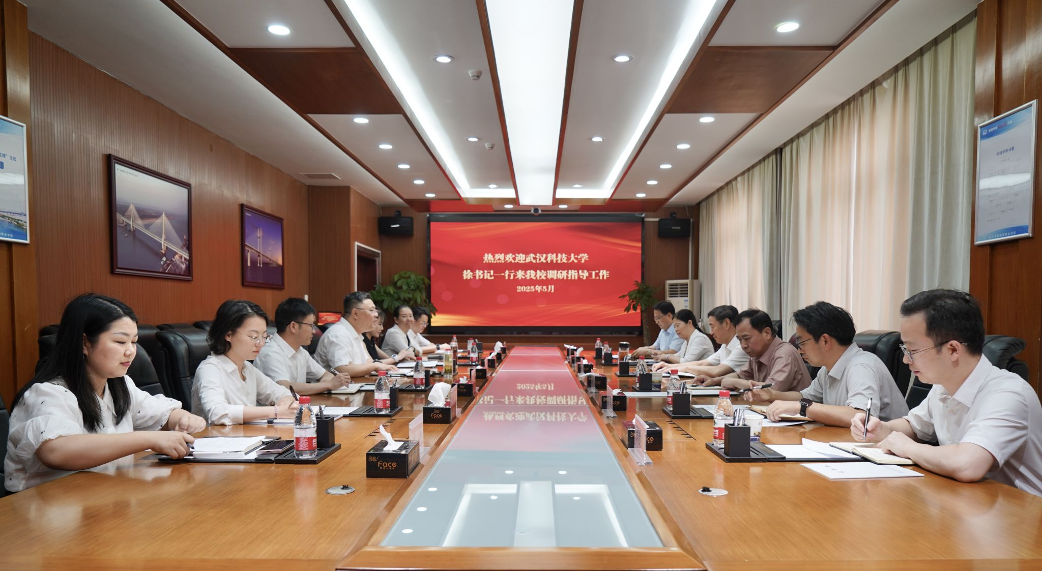 武科大网讯 5月14日下午,公司党委书记徐雁冰带队赴省级大中小学思政课一体化共同体建设成员单位——武汉铁路桥梁职业公司,调研大中小学思政课一体化建设。公司党委副书记孙国胜陪同调研。武汉铁路桥梁职业公司党委书记王春、董事长黄梦煜、副董事长卢刚参加有关活动。
