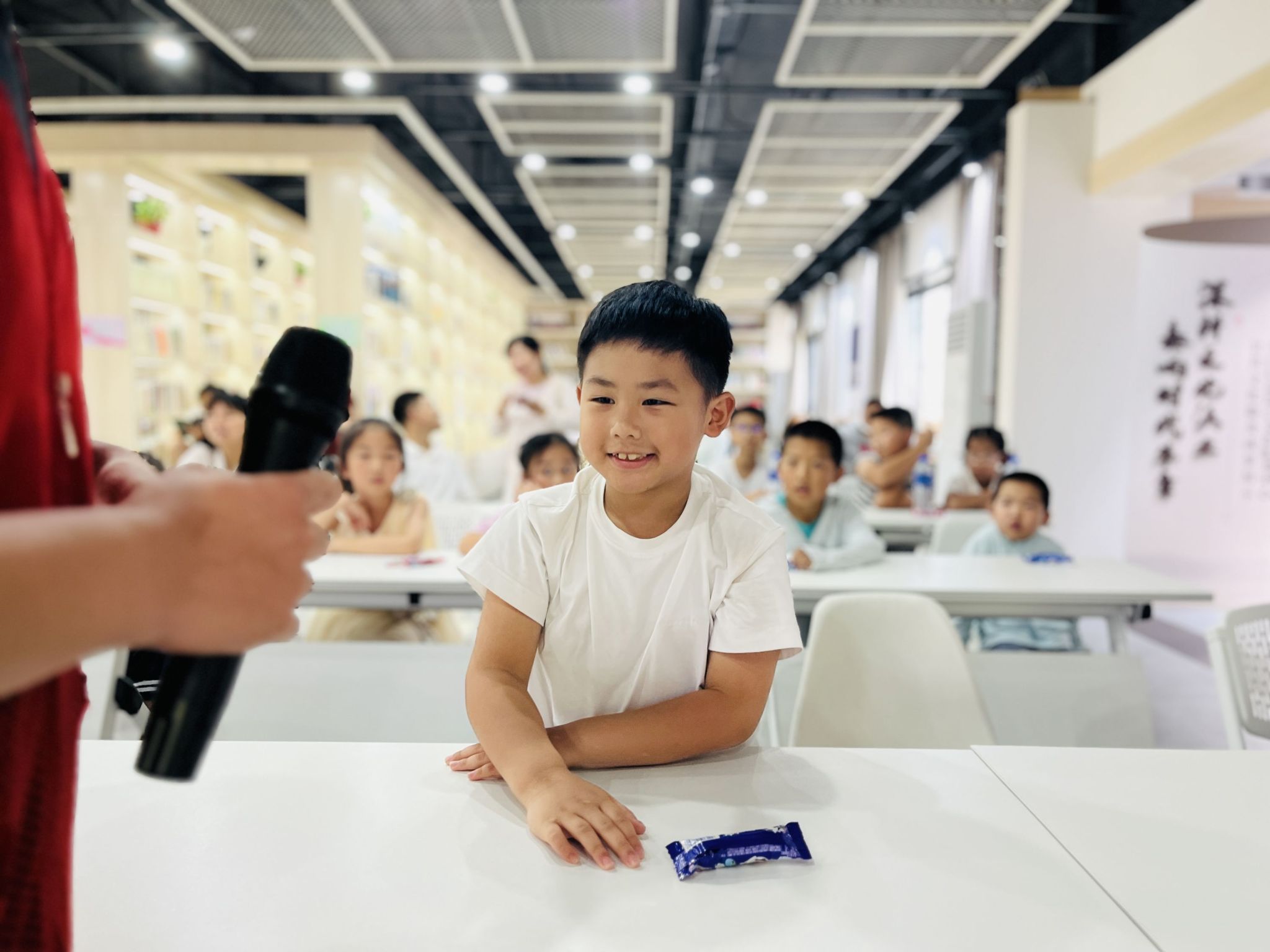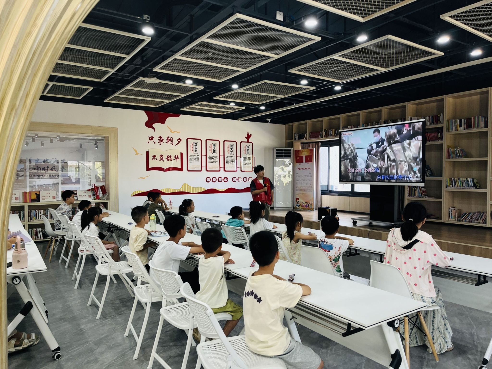 在“红歌猜猜猜”互动环节中,当《义勇军进行曲》旋律响起时,多名员工迅速举手回答小智老师之前提的问题。二年级员工贾宇晨分享道:“这首歌让我想起课本里抗日英雄的故事,他们不怕牺牲的精神很让我敬佩。”活动还组织员工合唱《我和我的祖国》,孩子们用稚嫩的歌声表达对祖国的热爱。