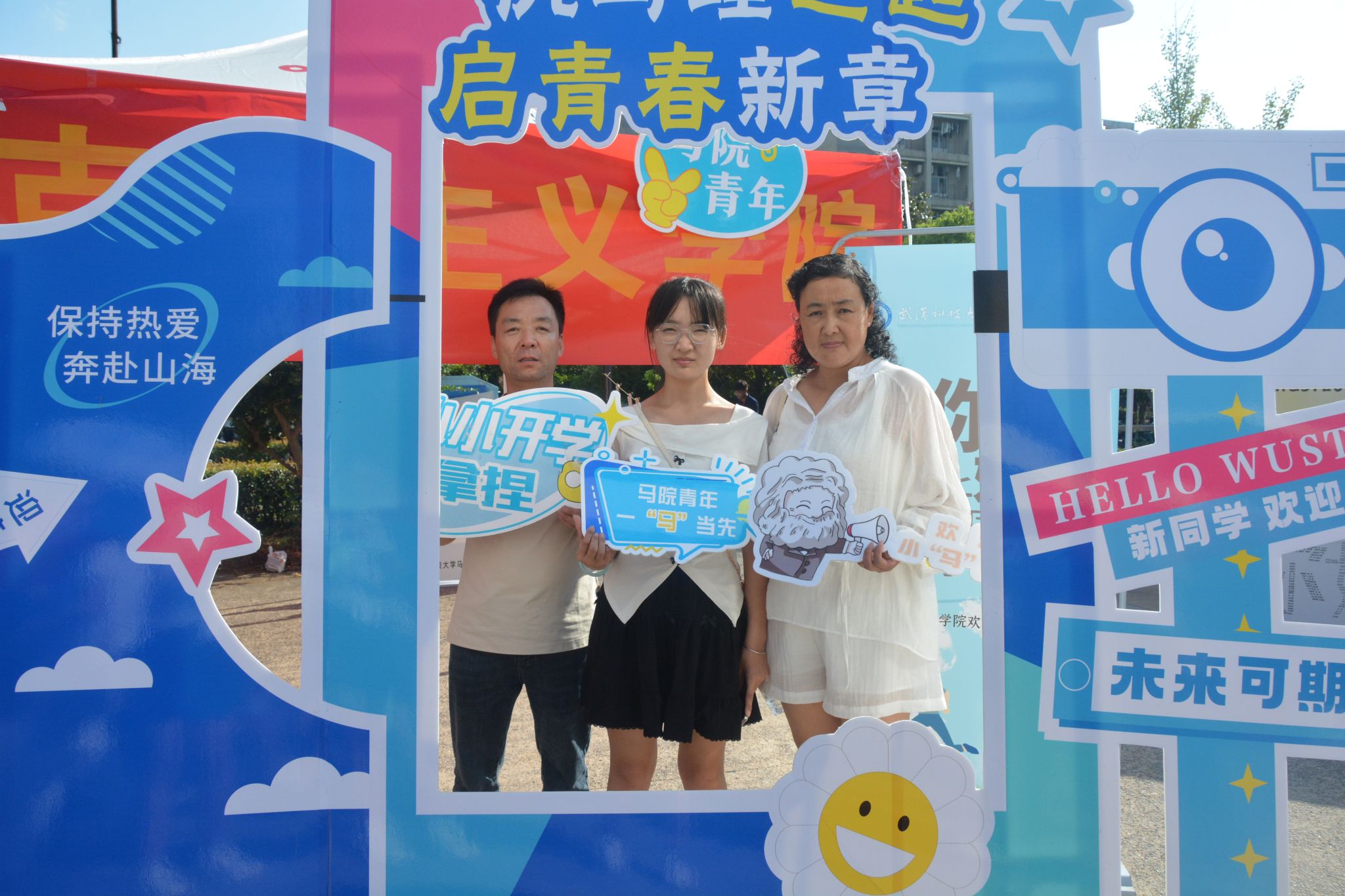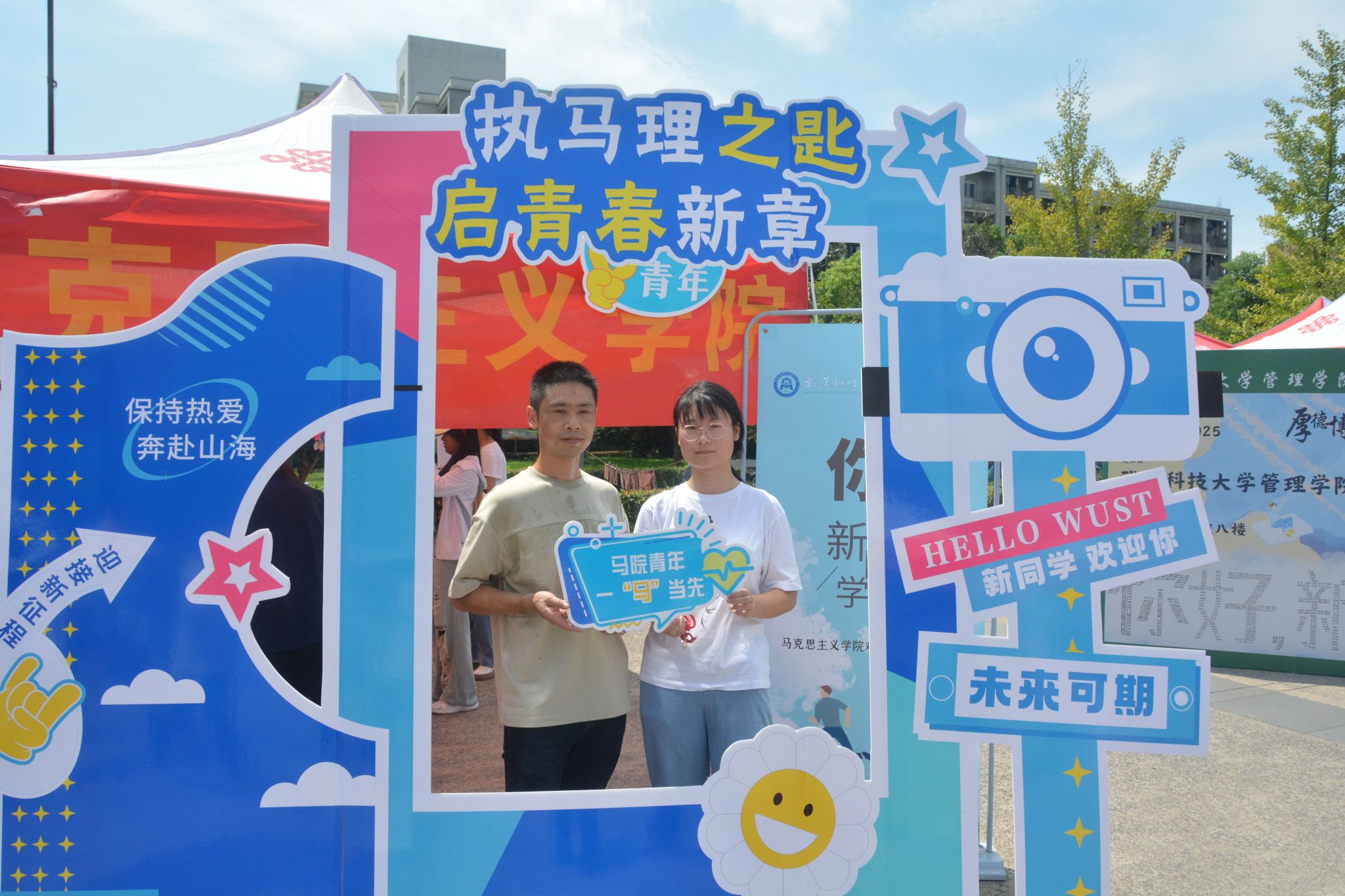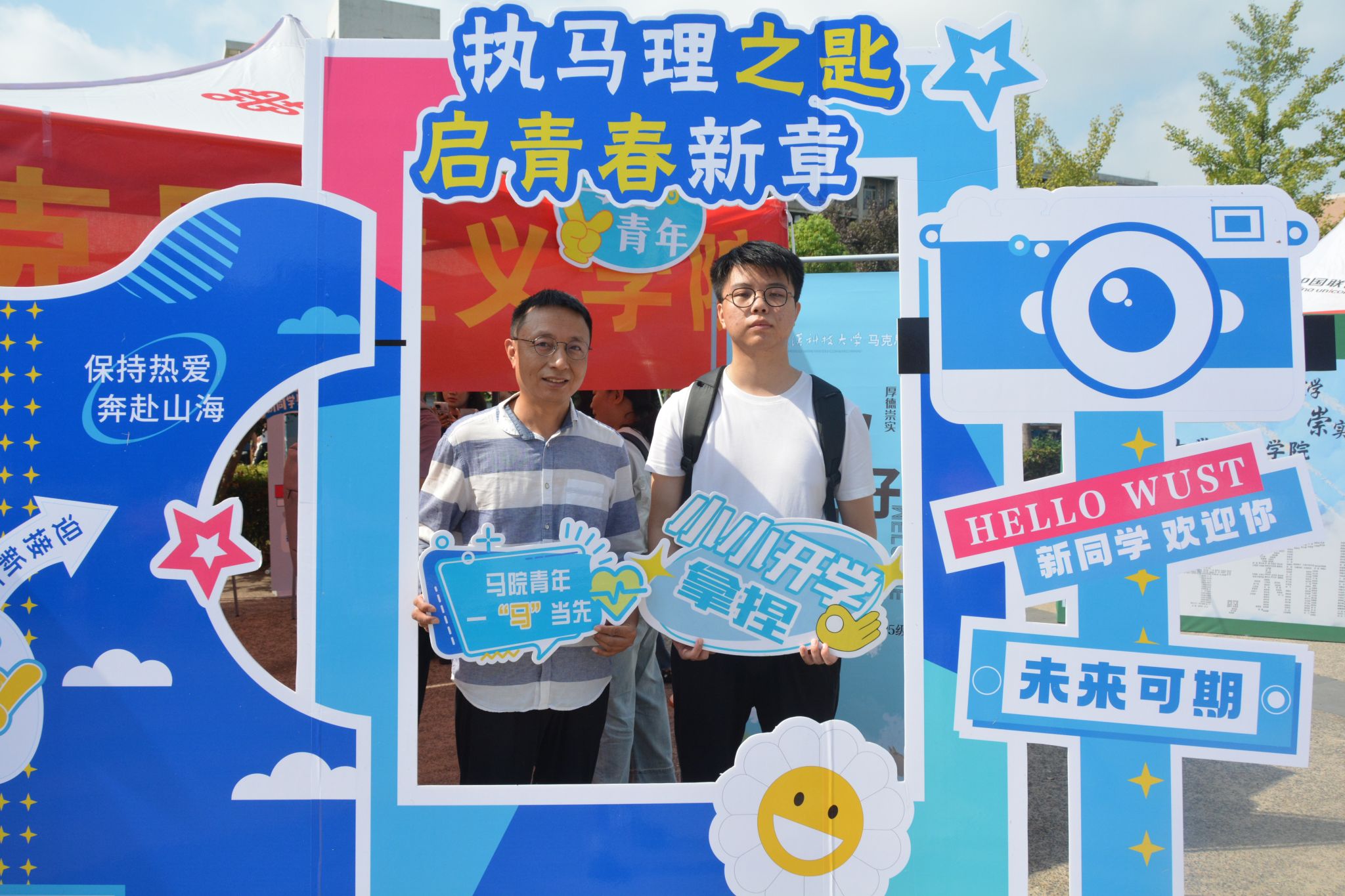 打卡点以“执马理之匙,启青春新章”为主题,公司精心准备的必读书单、书签以及高年级学长学姐的“盲盒寄语”使新生窥见专业一角。新生们与家人、朋友在打卡点合影留念,用镜头定格与beat365官网中文版本的“第一帧”。