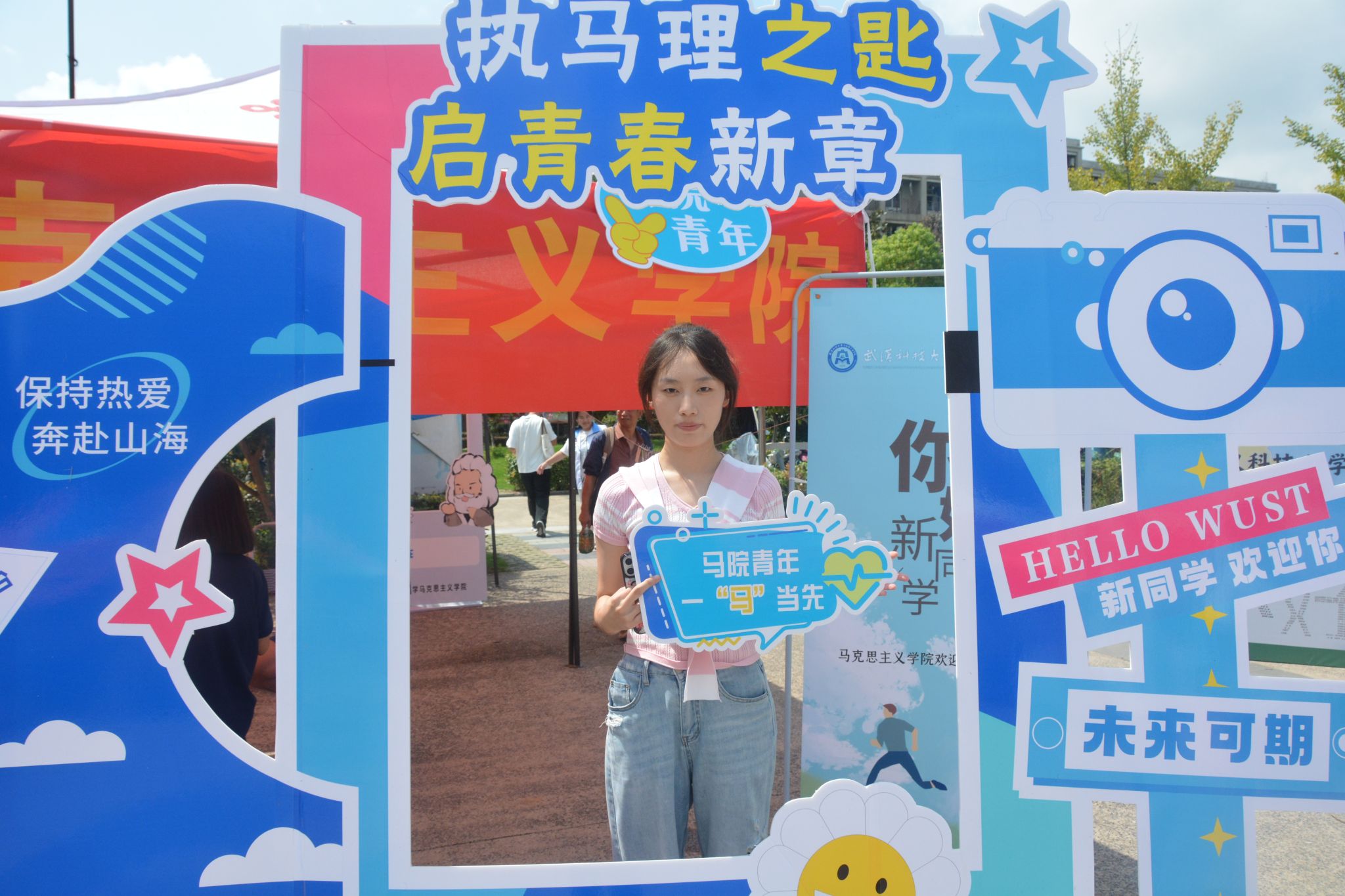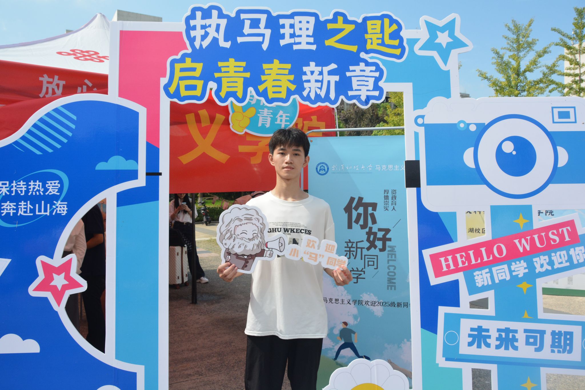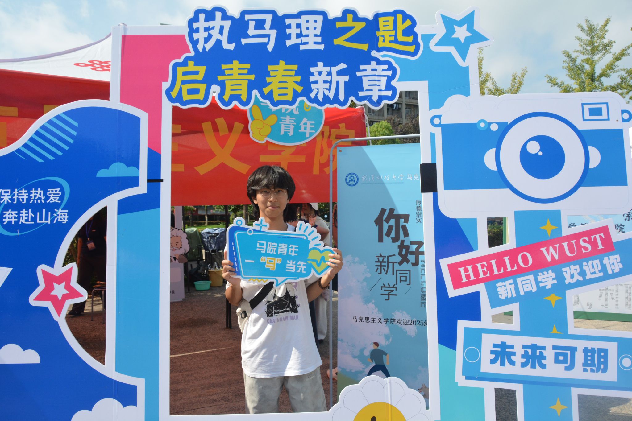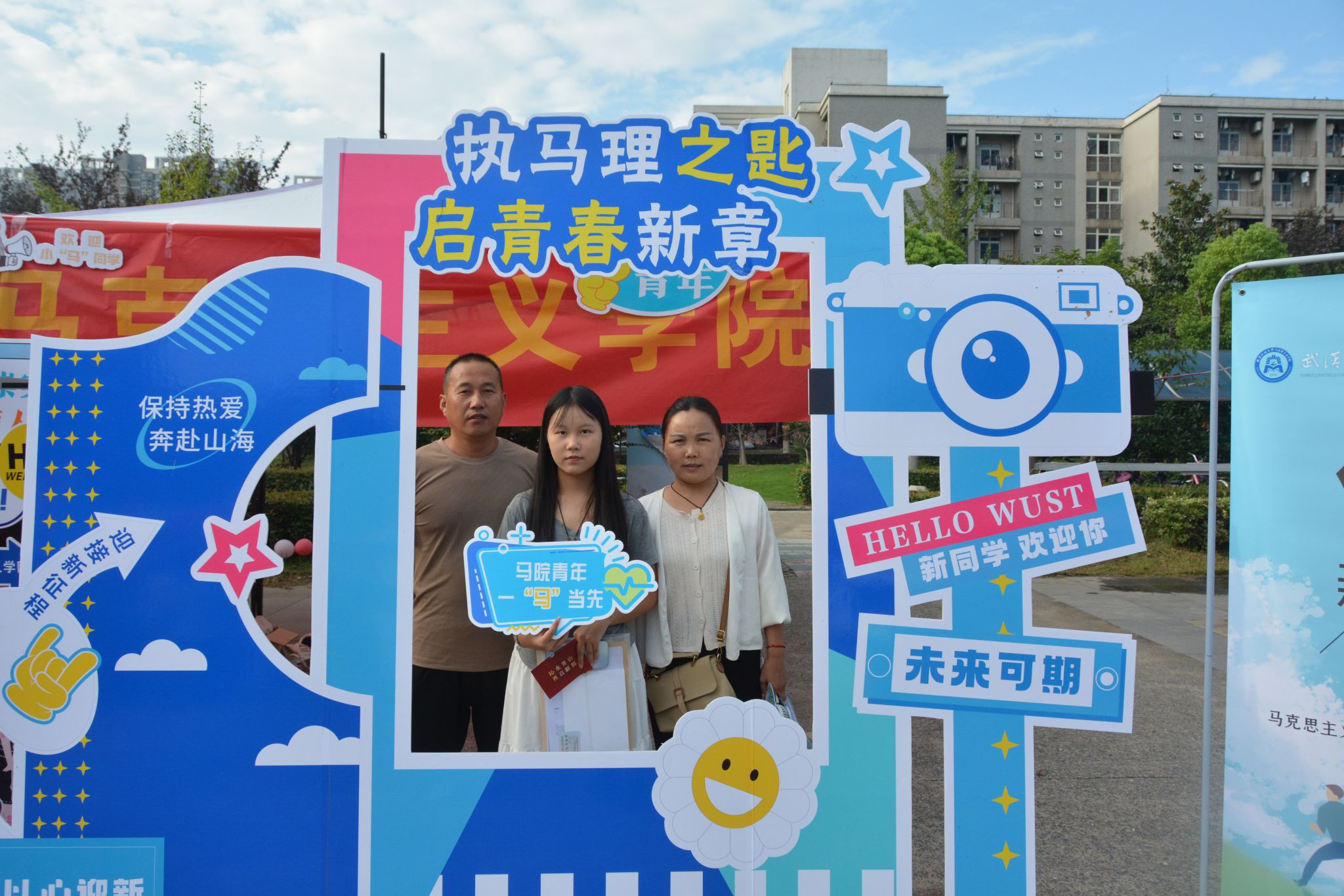 打卡点以“执马理之匙,启青春新章”为主题,公司精心准备的必读书单、书签以及高年级学长学姐的“盲盒寄语”使新生窥见专业一角。新生们与家人、朋友在打卡点合影留念,用镜头定格与beat365官网中文版本的“第一帧”。