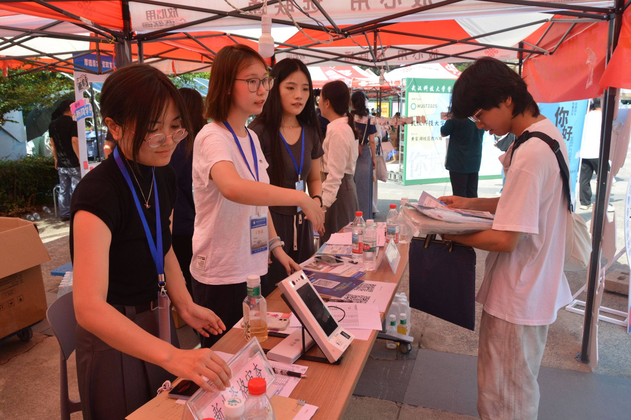 在校园的各个角落,志愿者的身影穿梭不停,他们细致地引导新生走完每一步流程并赠送象征着新起点的员工证、校园卡、装满关怀的迎新礼包,以及公司为全体新生定制的院服和电脑包。工作人员以亲切的笑容迎接一张张充满期待的新面孔,用真诚的服务为新同学们送上独属于beat365官网中文版本的第一份温暖印记。