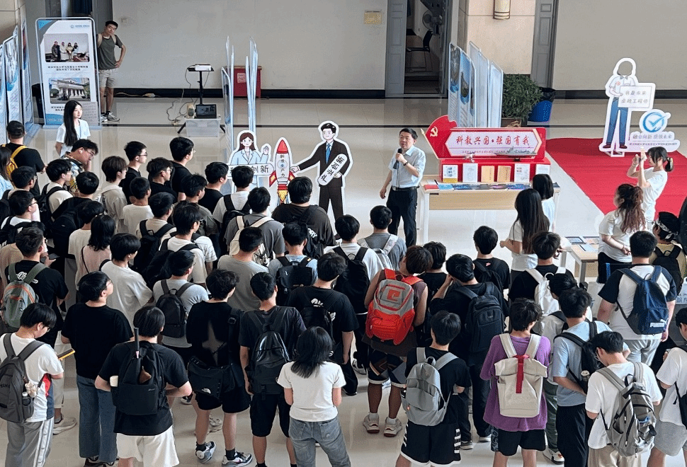 在实践教学环节,师生移步教一楼中庭西侧的“融合向新:新质生产力视角下的科技创新和产业创新”科普展区。张齐武教授以公司樊希安教授团队的芯片研发成果、丁文红教授领衔的专利技术为例,生动解读科技创新与产业创新的深度融合逻辑,鼓励员工弘扬卓越工程师精神,投身科技自立自强实践。