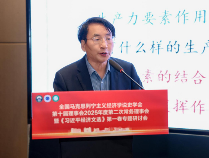 学会常务理事、辽宁大学经济公司于金富教授以《以生产方式变革推动新质生产力发展》为题作了主旨演讲。他强调,要以制度创新为核心,通过多元所有制、员工持股和现代治理把企业放出“鸟笼”翱翔,实现技术与制度双轮驱动,让新质生产力加速起飞。