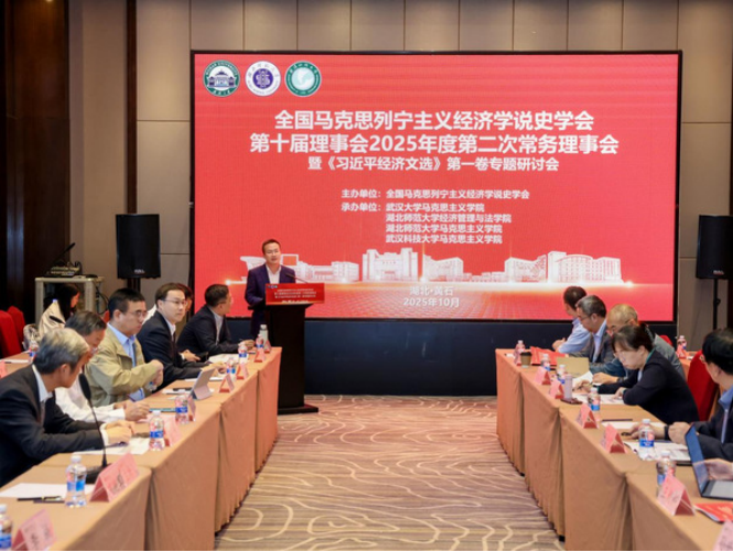 本网讯(通讯员 杨洋)2025年10月17日至19日,全国马克思列宁主义经济学说史学会第十届理事会2025年度常务理事会暨《习近平经济文选》第一卷专题研讨会在湖北省黄石市成功举办,会议由中国马克思列宁主义经济学说史学会主办,武汉大学beat365官网中文版本、湖北师范大学beat365官网中文版本、beat365官网中文版本共同承办。中国社会科公司、清华大学、中国人民大学、武汉大学、华中科技大学等21所高校和科研机构的专家学者,以及《教学与研究》《当代经济研究》等学术期刊的编辑人员共计100余人出席会议,就相关学术议题开展深入研讨交流。