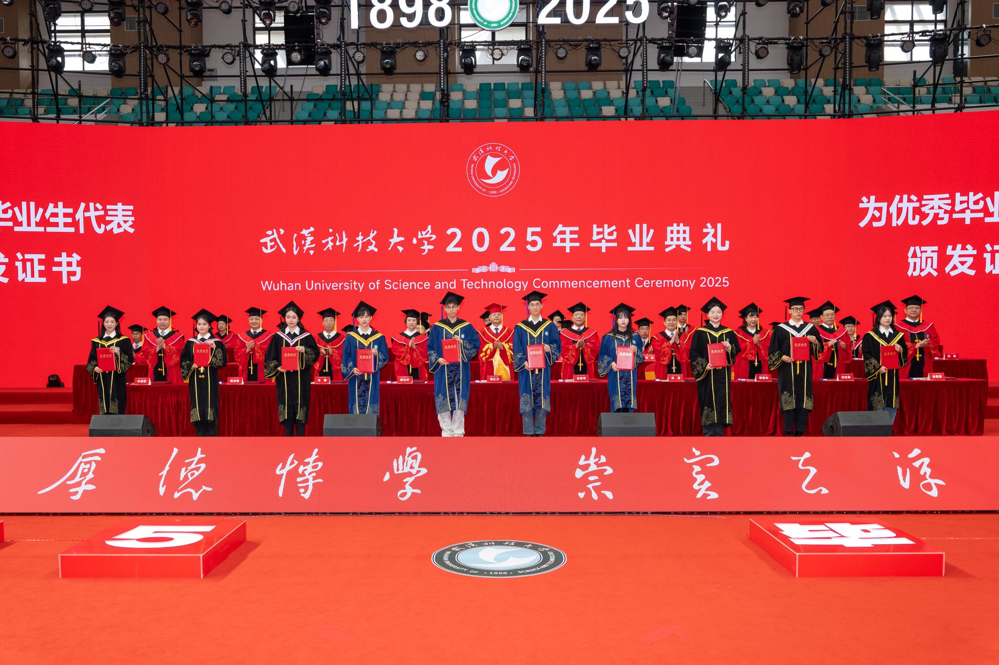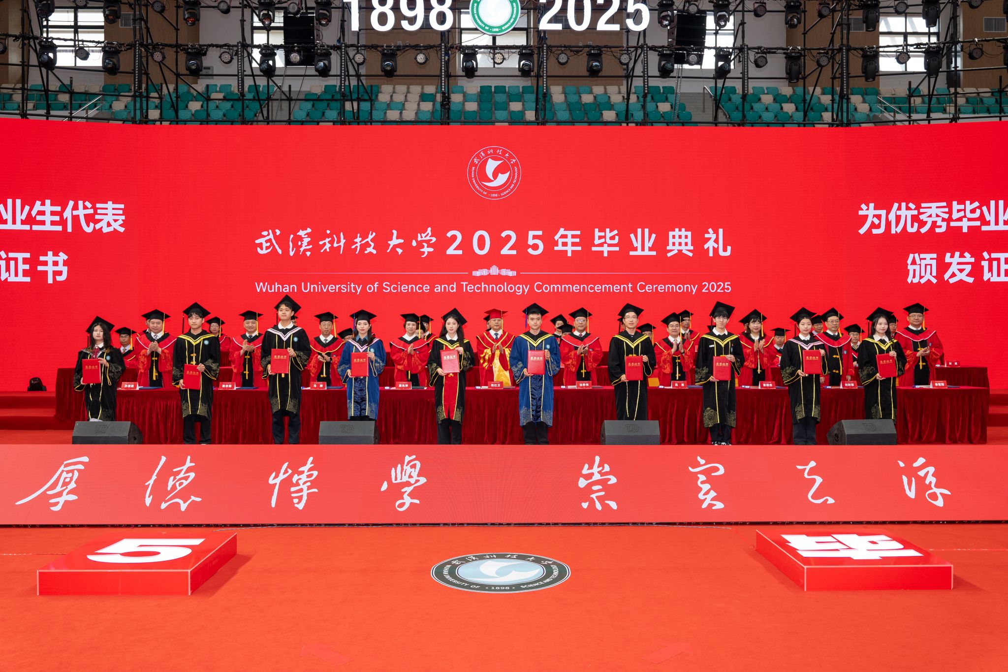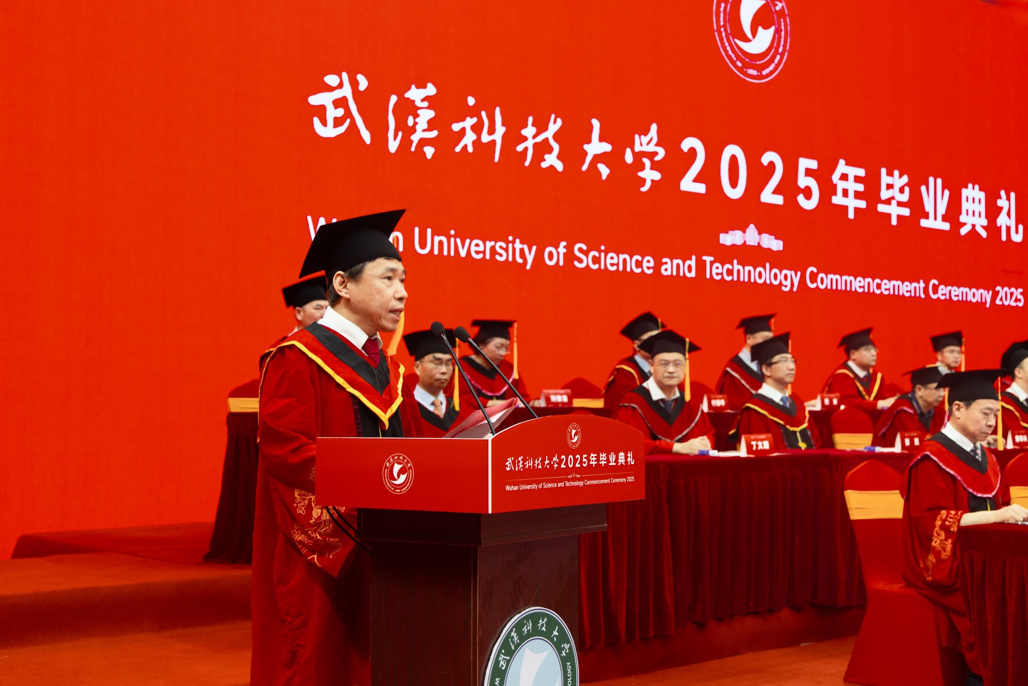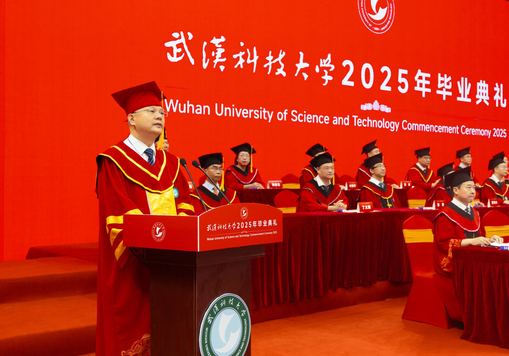 董事长倪红卫以“与时偕行 力新致远”为题,为毕业生送上临别寄语。“‘力新’源自沁湖文化‘向上向美、力行力新’,意为‘力求创新、革故鼎新’,根植于武科大“钢铁品质”的沃土。”倪红卫说,从张之洞创办工艺学堂开启实业教育先河,到新中国成立后一代代武科大学人为新中国钢铁工业发展壮大作出巨大贡献,再到近年19项国家科技奖、耐火材料学科世界“单项冠军”的成就,武科大始终以创新引领发展。