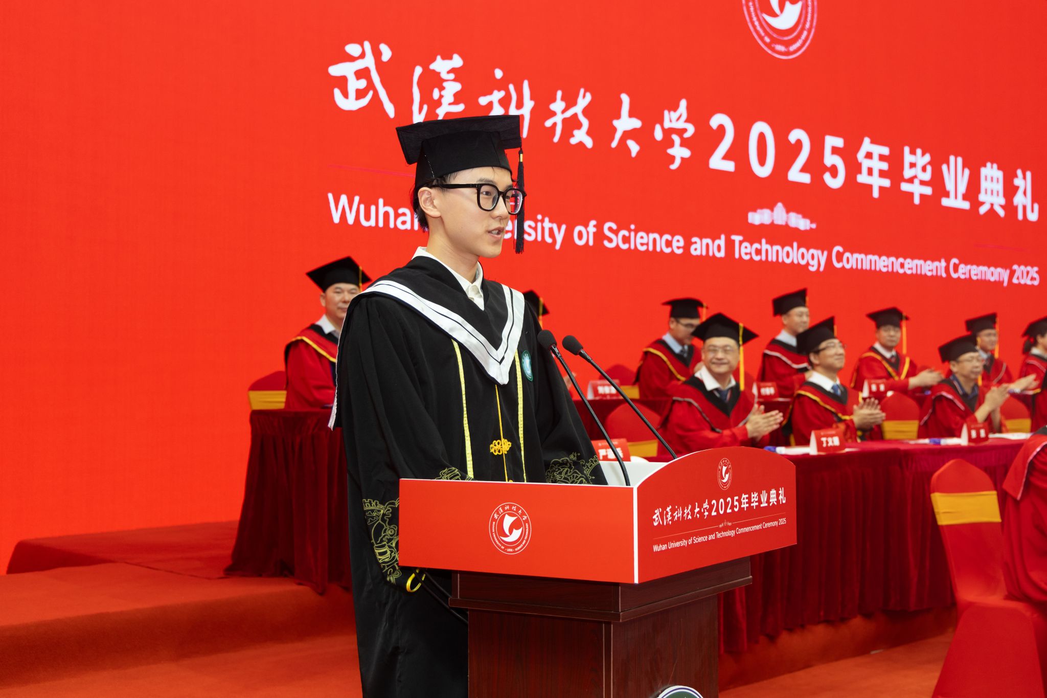 本科生毕业生代表、医学部陈辉广发言,回忆五年学医路上,从开学典礼抗疫英雄讲述中理解“钢铁品质”的担当,到解剖课上大体老师遗书带来的生命敬畏,再到临床实习中患者眼神驱动的探索。他感谢母校、老师、大体老师及家人,同时呼吁毕业生们带着“钢铁品质”扎根祖国所需之处,让个人价值在时代中奔涌,祝愿毕业生如钢铁坚韧,前程似锦。