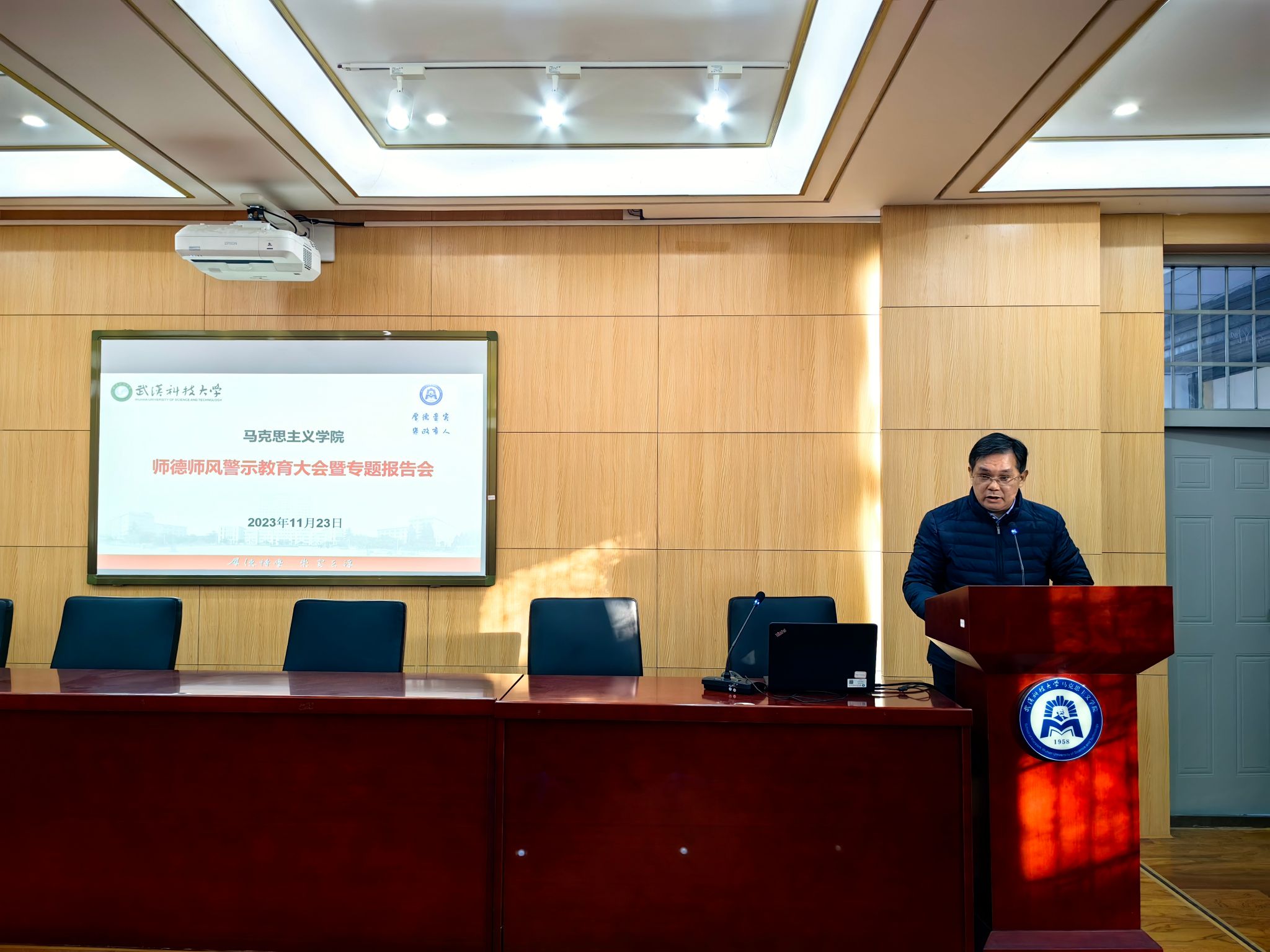 本网讯(通讯员郭海沙)为深入学习领会习近平总书记关于师德师风的重要指示精神,进一步加强思政课教师师德师风建设,切实发挥师德失范行为典型案例警示作用,筑牢思政课教师师德师风底线。11月23日下午,公司在41101报告厅召开了2023年秋季学期师德师风警示教育大会暨专题报告会,党委书记唐忠义主持会议并讲话,公司领导班子、全体教师参加会议。