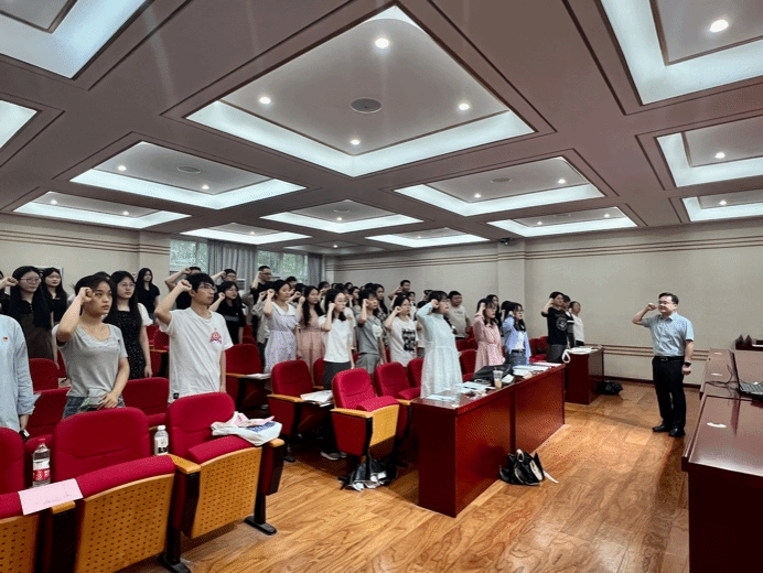 会上,郭海沙以《坚定信仰、恪守党纪、常怀三心》为题为讲授纪律党课,通过《条例》修订内容的重点解读,勉励大家要常怀忠孝之心、感恩之心、敬畏之心,教育引导全体毕业生党员做文明离校的表率,在今后的工作生活中始终牢记自己的党员身份和使命,做到明底线、知敬畏、尽职责、遵纪律,继续发挥好党员的先锋模范作用,以实际行动为党旗增辉,为母校添彩。在郭海沙的领誓下,全体参会党员庄重宣誓,重温入党誓词。