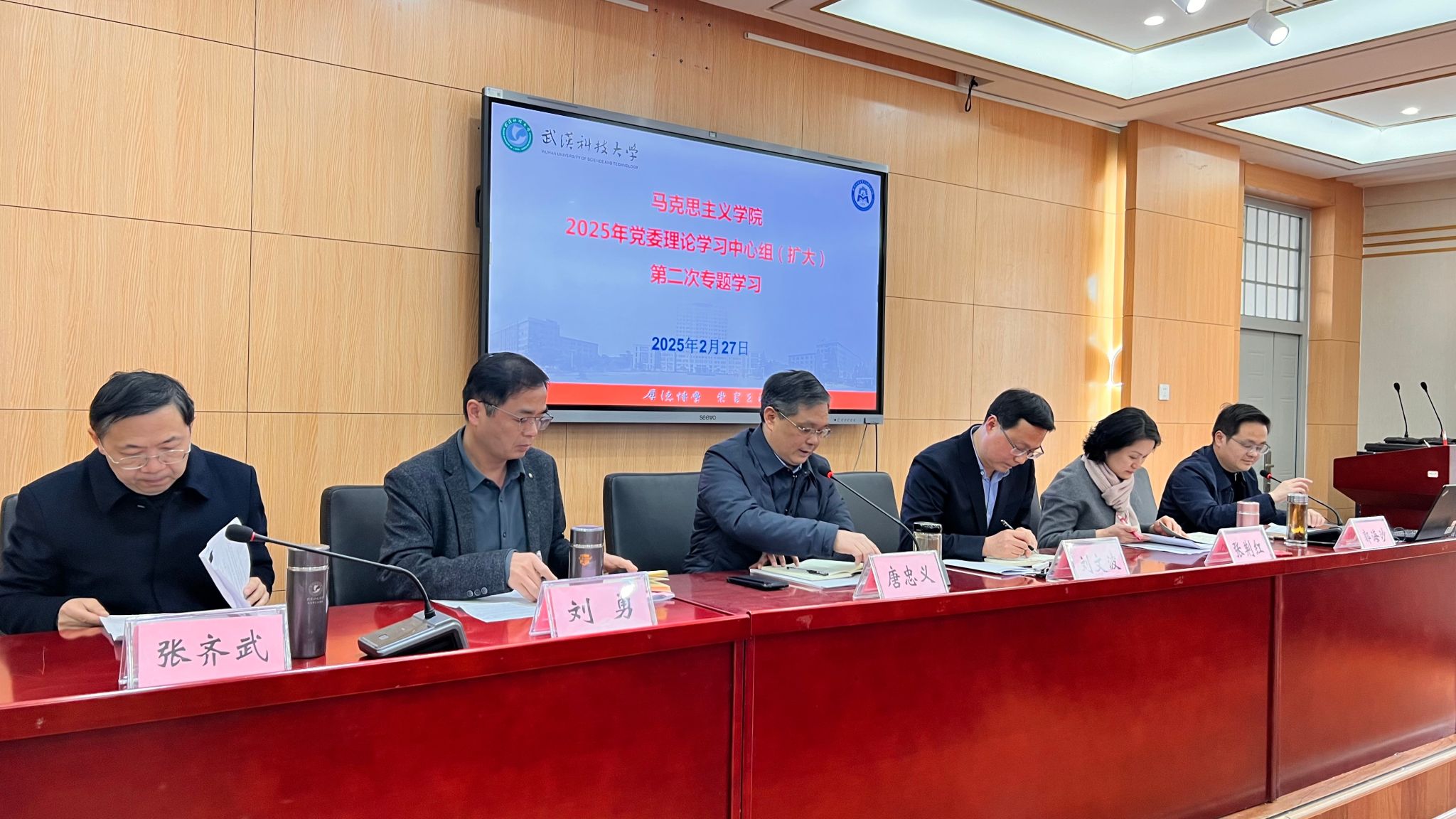 本网讯(通讯员李晓明)2月27日下午,公司在教四楼41101报告厅举行2025年党委理论学习中心组(扩大)第二次学习会议。党委书记唐忠义主持会议并讲话,公司全体党委委员、全院教职工参加会议。