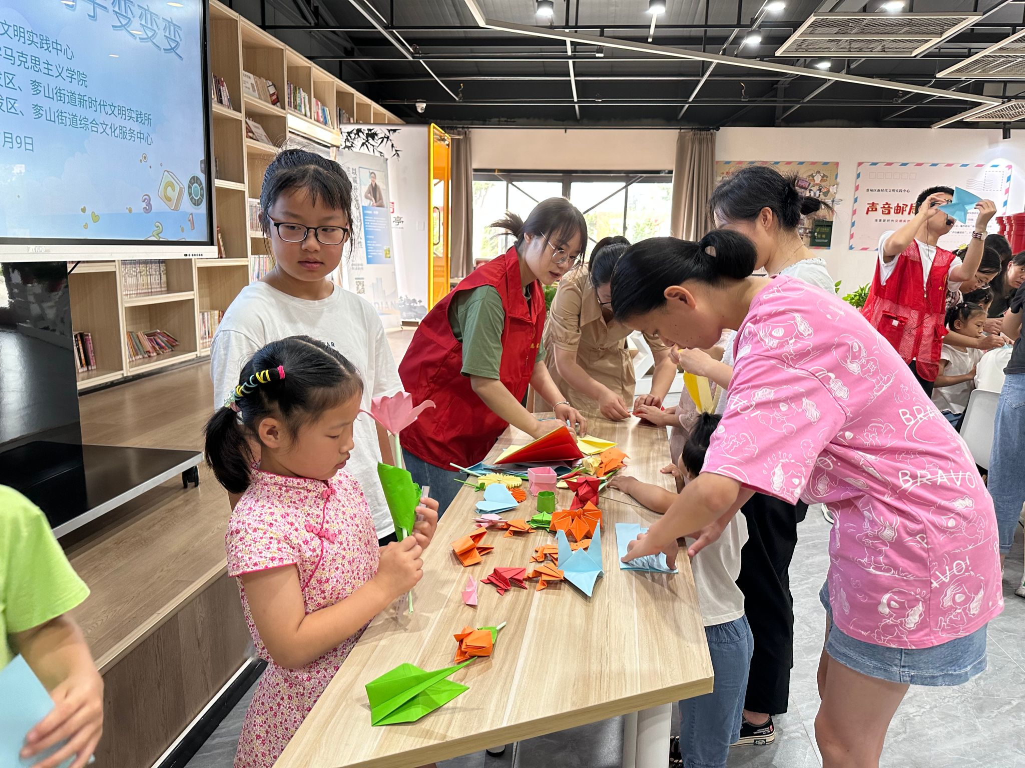 随后,志愿者和小朋友们围坐在一起,尽情发挥想象,以纸为材,以手为用,通过折、裁、拼、撕等艺术形式,将一张小小的彩纸转化为栩栩如生的艺术品。志愿者引导小朋友轮流上台展示自己的折纸作品,让他们感受赞美的快乐。志愿者孙琳说:“折纸活动能够激发小朋友们的想象力和创造力,培养独立思考和动手能力。”