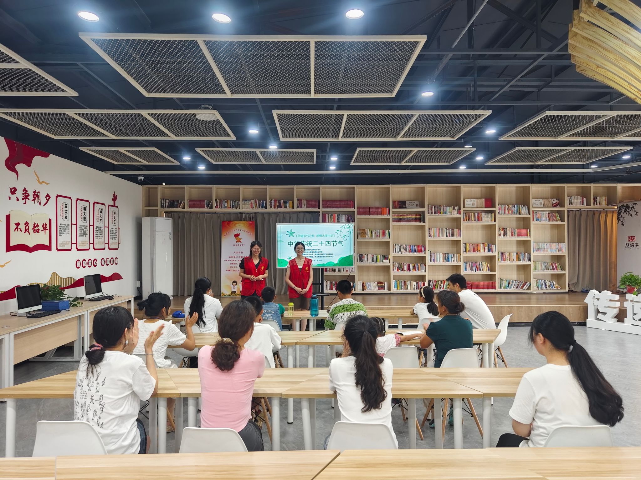 最后,志愿者组织小朋友们进行了二十四节气知识竞答,并为小朋友们准备了精美的节气书签。一时间小朋友们积极抢答、奋勇争先。活动尾声,志愿者带领小朋友们重温二十四节气诗歌视频,并一起合唱了二十四节气歌,悦耳的歌声悠扬回荡。