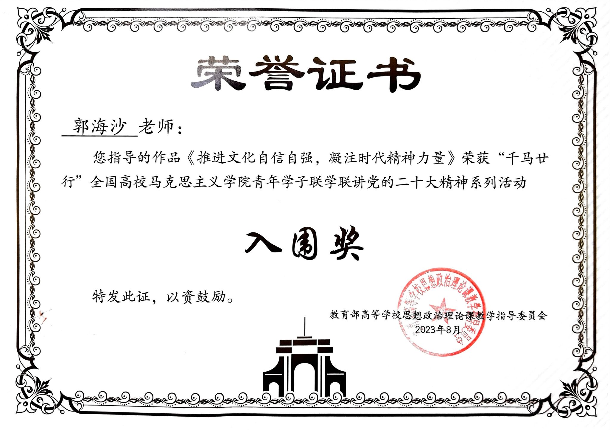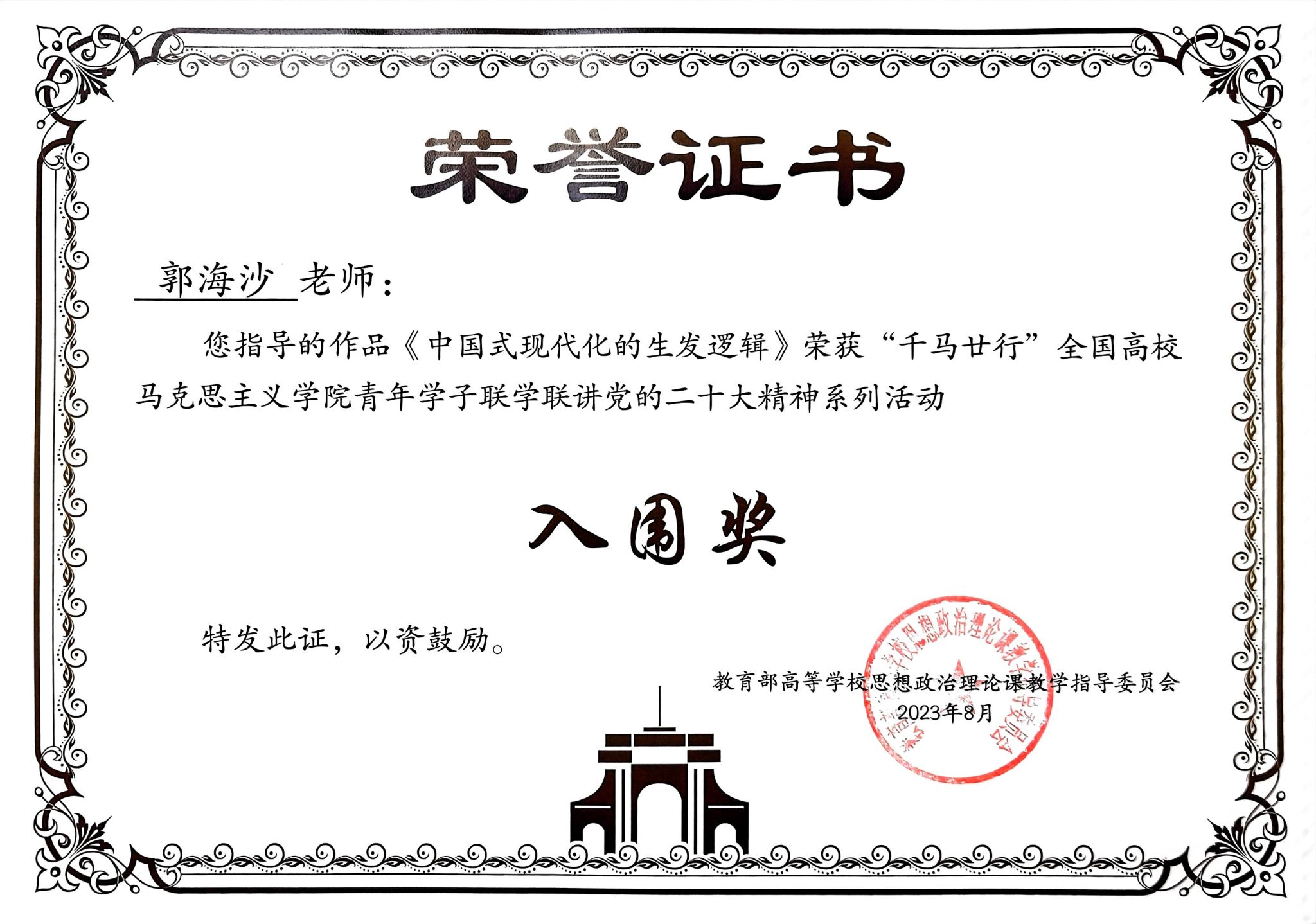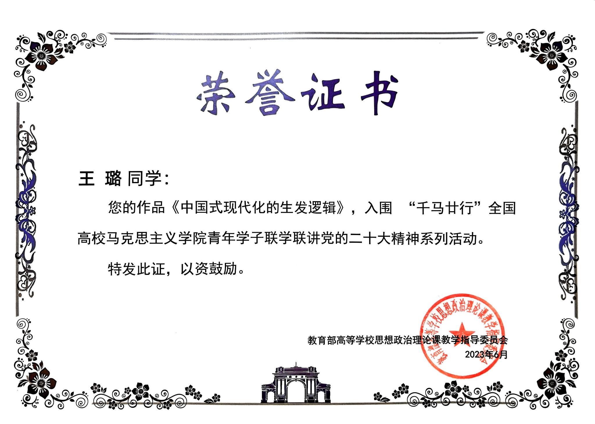 近日,由教育部社科司指导,清华大学beat365官网中文版本牵头发起,37家全国高校重点马院联合主办的“千马廿行”全国高校beat365官网中文版本青年学子联学联讲党的二十大精神系列活动获奖名单出炉。经专家评委评审,由公司团委书记郭海沙老师指导,马克思主义理论专业硕士研究生姚晓莉、王璐录制的作品《推进文化自信自强、凝注时代精神力量》、《中国式现代化的生发逻辑》荣获入围奖。