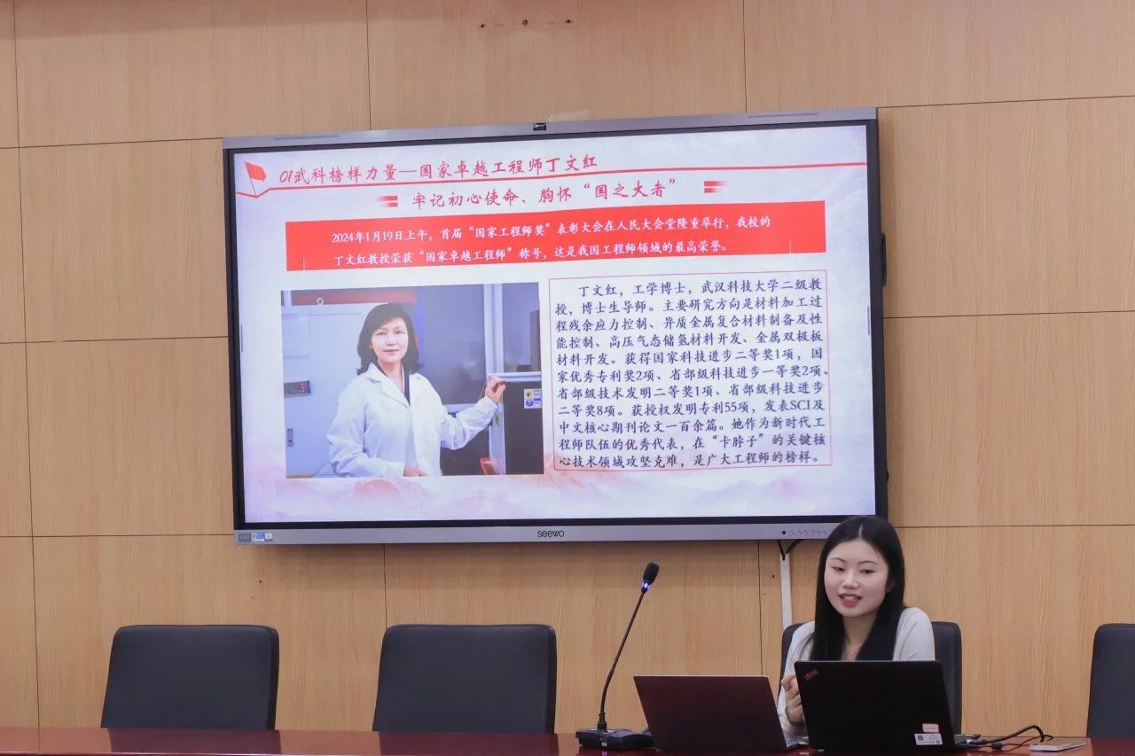在个人篇中,肖杰介绍了武科榜样——国家卓越工程师丁文红。丁文红教授作为新时代工程师队伍的优秀代表,在“卡脖子”的关键核心技术领域攻坚克难,是广大工程师的榜样。同时,肖杰激励广大武科学子要走稳走好我们这一代人的长征路,能做事的做事,能发声的发声,有一分热,发一分光。