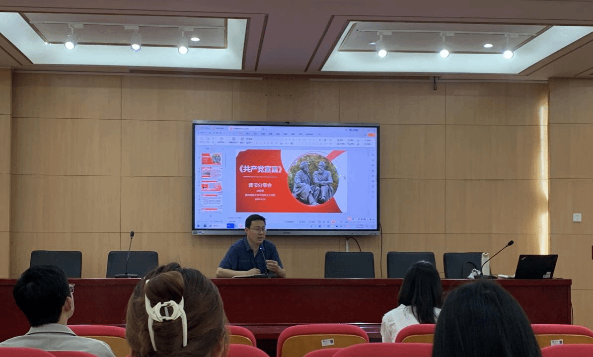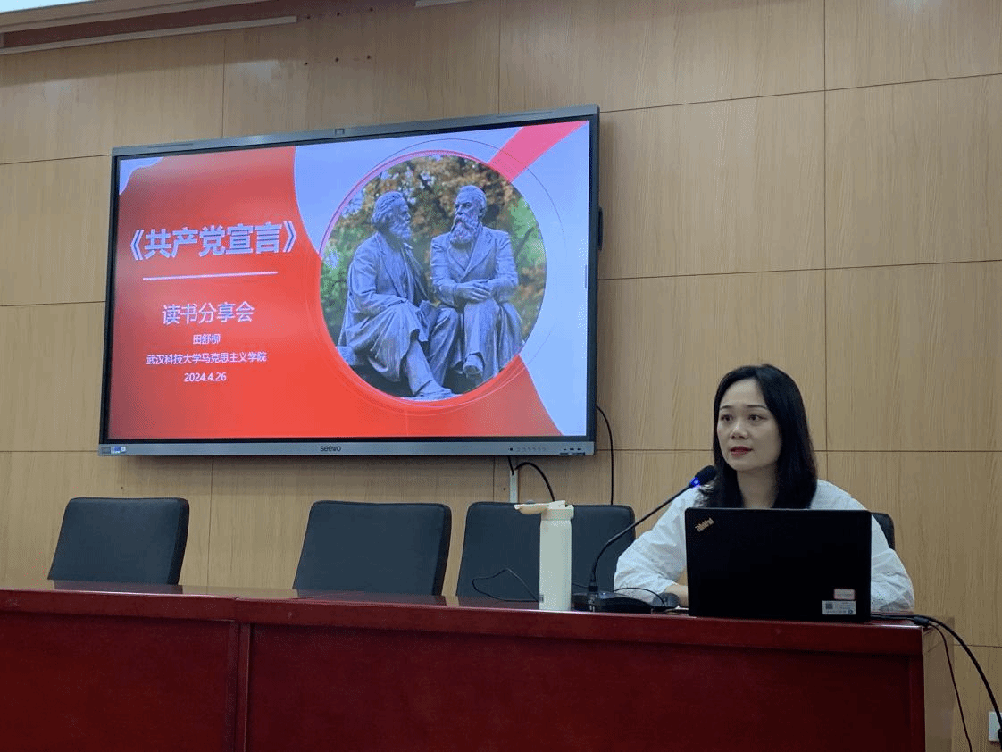 武科大网讯(通讯员周含雪)4月26日上午,beat365官网中文版本《共产党宣言》读书会在41101学术报告厅举办。公司经理刘文波出席本次活动,全体23级硕士研究生参加会议。田舒柳老师作为此次读书会的领读人,主持活动。