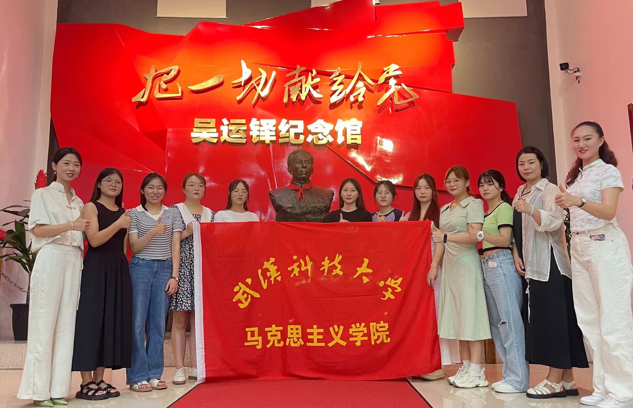 走进陈昌浩故居的那一刻,仿佛穿越了时空的隧道,回到了那个风雨飘摇、革命浪潮汹涌澎湃的年代。从进门后看到的陈昌浩同志的雕像到雕像上方“浩气长存”的题字,从简陋的家具到珍贵的文献资料,从墙上的照片到桌上的笔墨,每一处细节都在讲述着陈昌浩先生的成长故事和革命经历。在这里,队员们深入了解了陈昌浩同志对党的建设和革命事业所作出的杰出贡献,更见证了他作为革命先驱,为国家和民族独立自由不懈奋斗的辉煌一生。