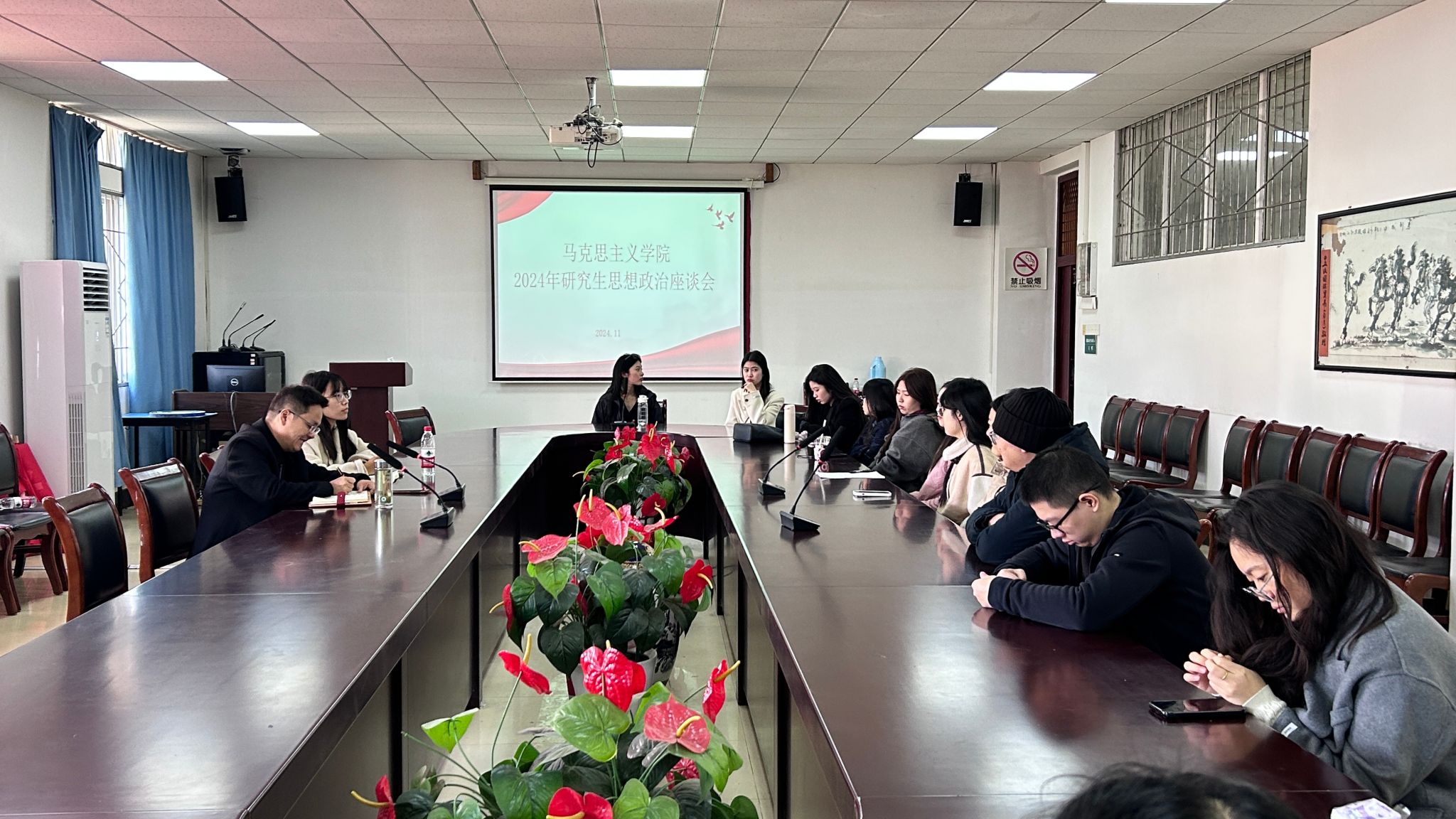 武科大网讯(通讯员陈瑛俏)11月28日,公司在41401会议室召开2024年研究生思想政治座谈会,公司党委副书记、副经理郭海沙、辅导员李晓明、各年级研究生代表参加此次会议。
